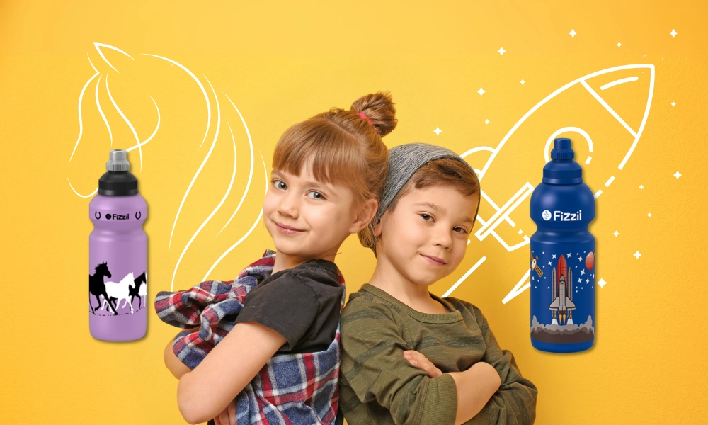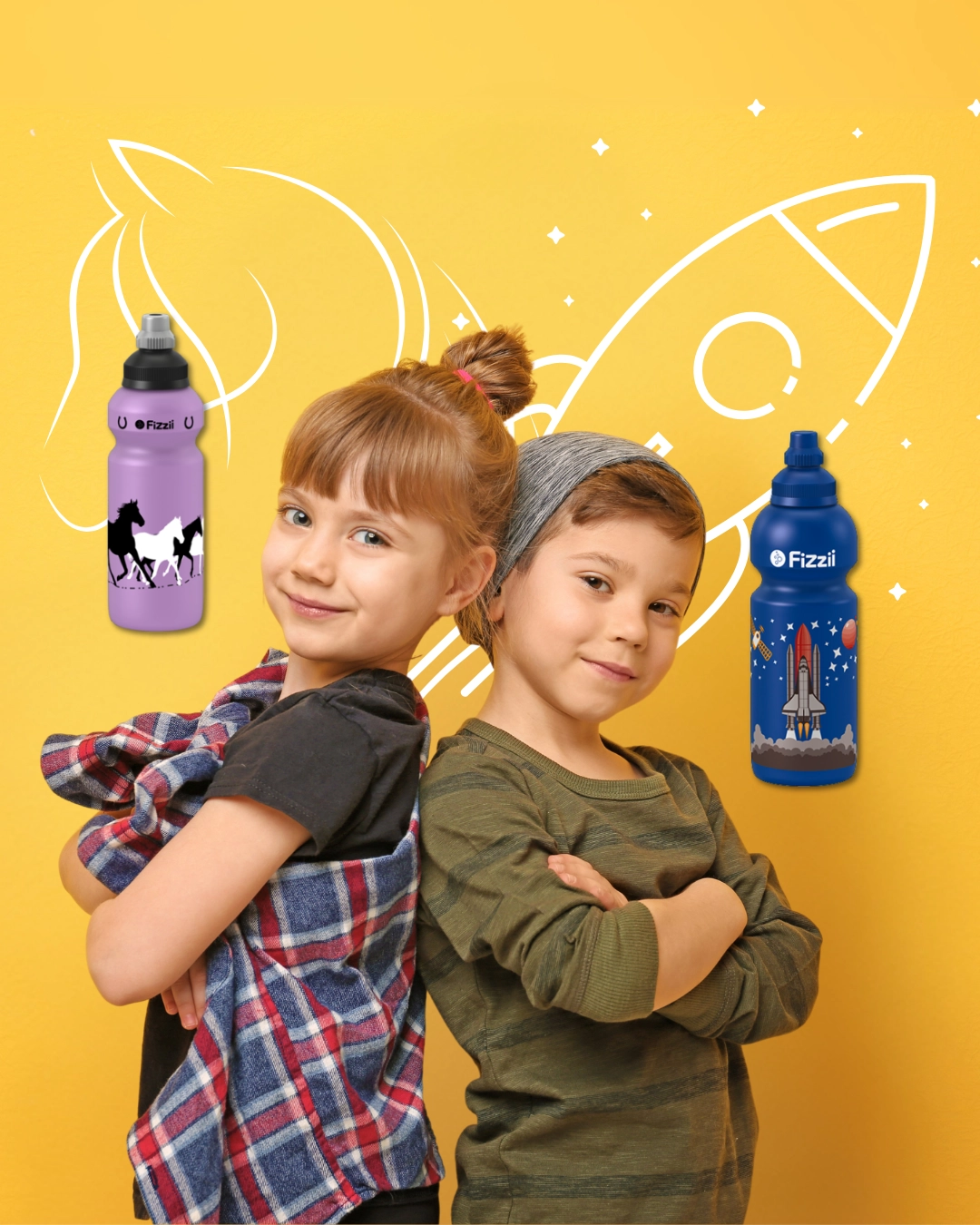 Für Kinder zählt vor allem eins: Das Design! Unsere Fizzii Flaschen gibt es in vielen farbenfrohen Motiven – passend für jeden Geschmack.