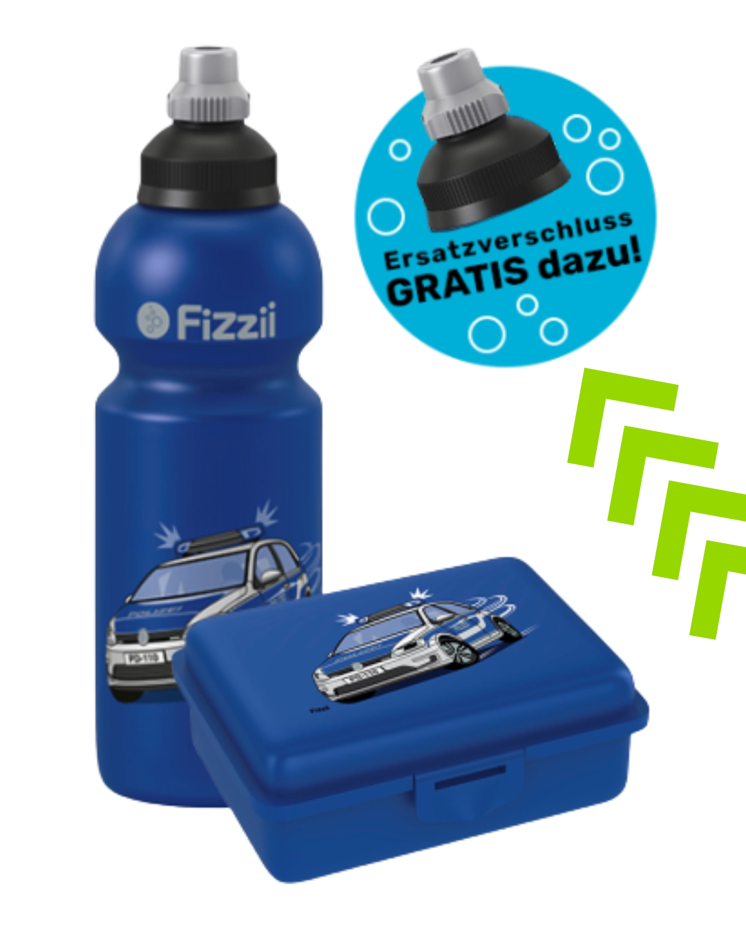 Unsere Fizzii Trinkflaschen & Brotdosen Sets enthalten einen Gratis-Drehtrinkverschluss – perfekt als Ersatz, wenn einer in der Spülmaschine ist. Alle unsere Verschlüsse sind kompatibel mit den 330 ml, 500 ml und 600 ml Flaschen – kein Suchen mehr am Morgen!